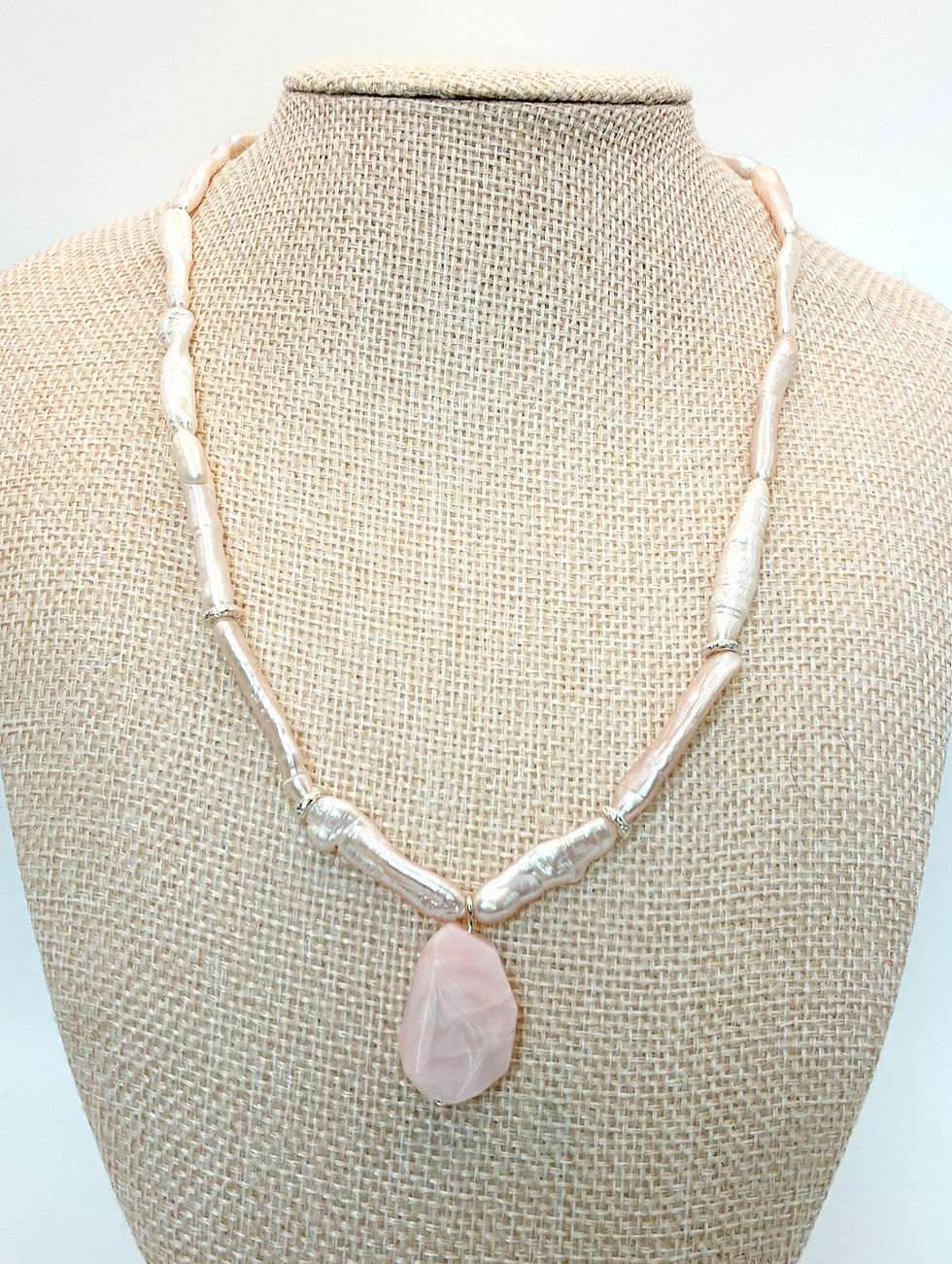 Cream Freshwater Keshi Pearl Toggle Necklace